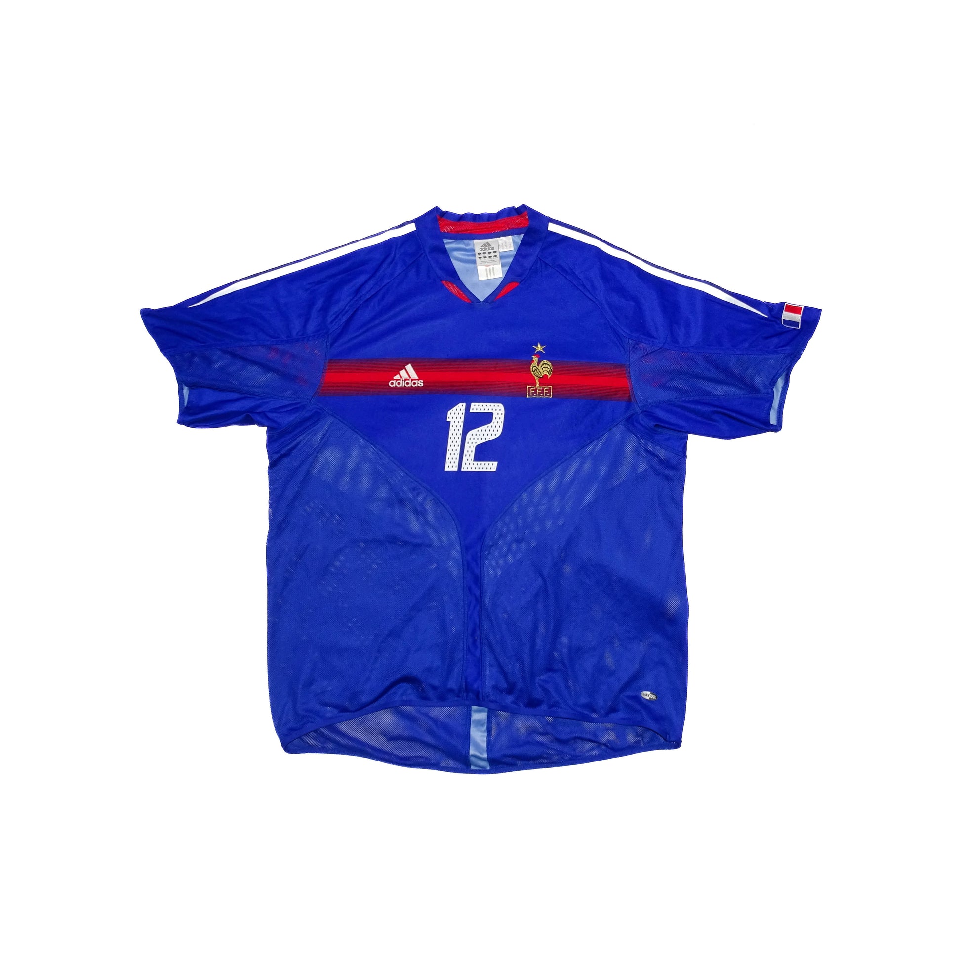 Maillot rétro domicile de l'Equipe de France durant la coupe du monde 2004. D.Cissé, R.Pirès, P.Viera ou encore Z.Zidane composaient l'effectif.