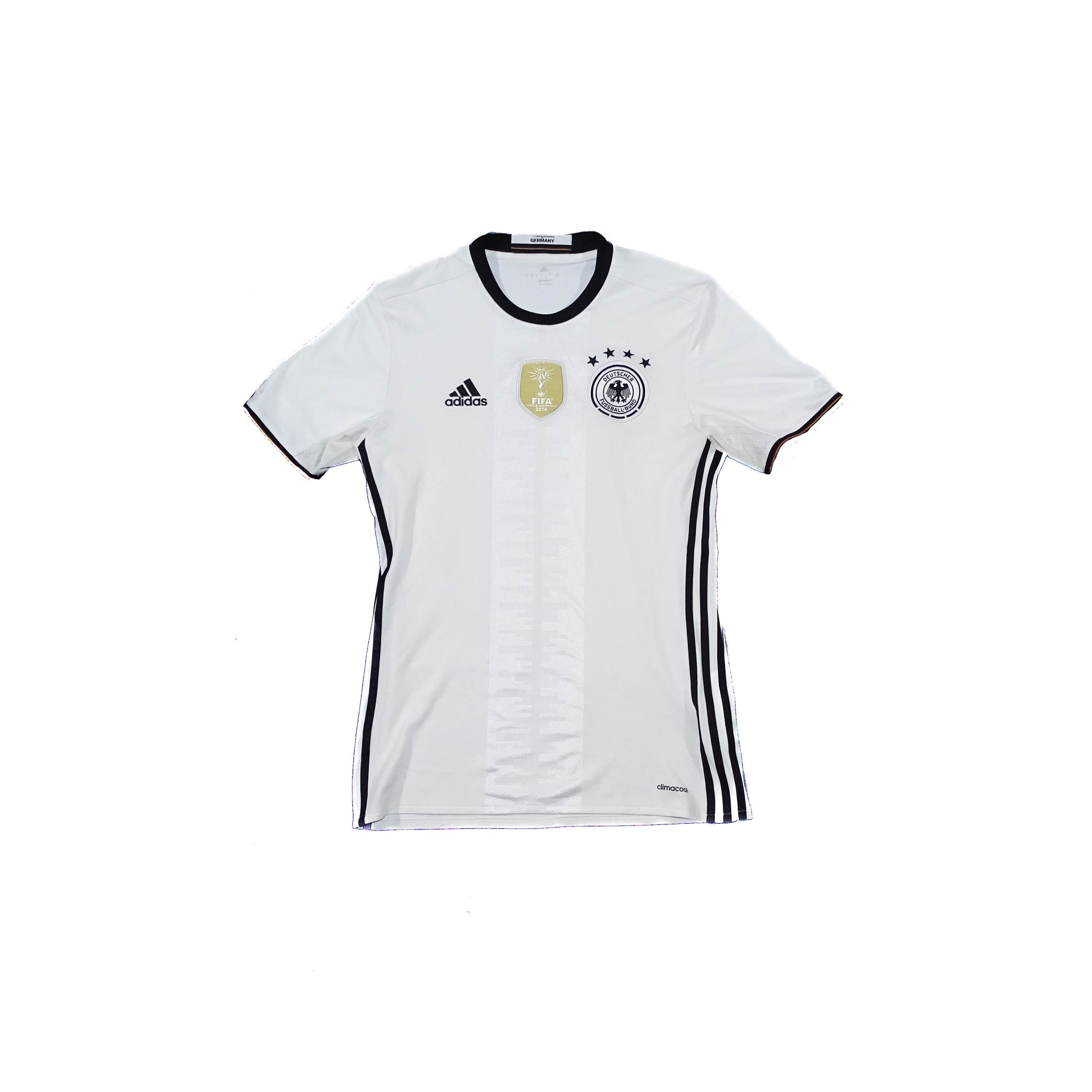 Maillot rétro domicile de l'Allemagne utilisé notamment pendant l'Euro 2016 en France. M.Götze, M.Reus ou encore T.Kroos composaient l'effectif.